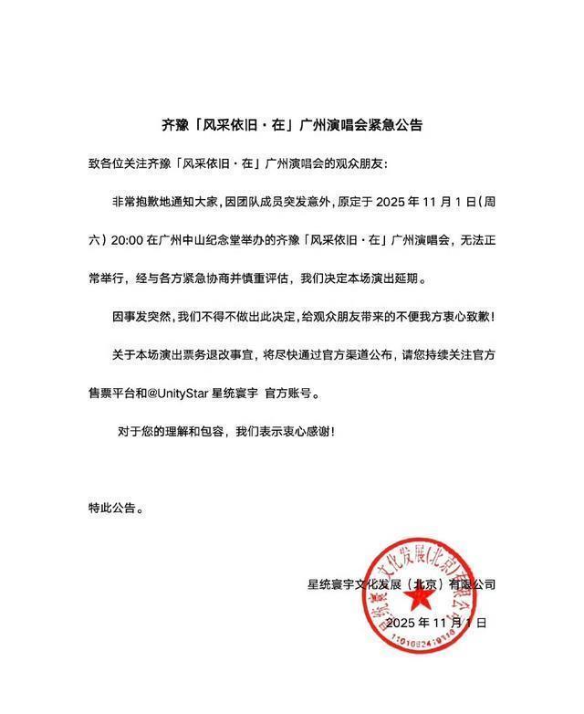 而原定当晚在广州中山纪念堂举办的齐豫演唱会,也因“团队成员突发意外”紧急延期,而这位“团队成员”,正是屠颖。